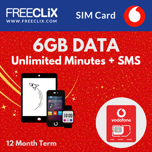 • Vodafone 6GB Data + Unlimited Minutes & Texts