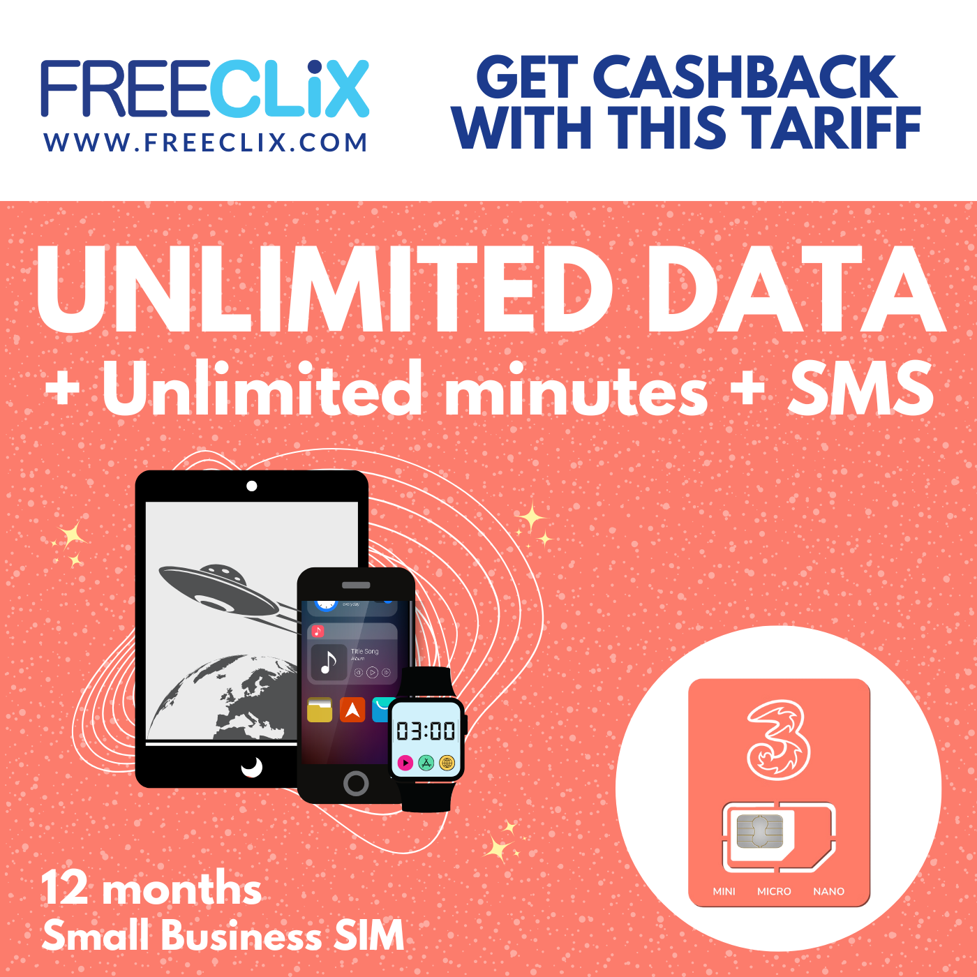 Earn cashback with selected small business tariffs on our store with EE and Three. Payable direct to you by FreeClix 3 months after tariff connection.